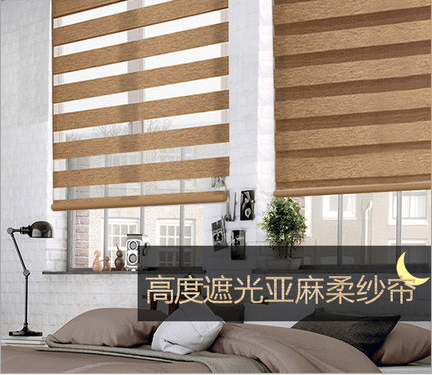 柔紗簾又名斑馬簾,調(diào)光簾,雙層卷簾,日夜簾,彩虹簾,柔麗絲等,是一種簾布。起源于韓國(guó),在國(guó)際上也非常流行,柔紗簾材質(zhì):聚酯滌綸/麻/尼龍,雙層面料 。