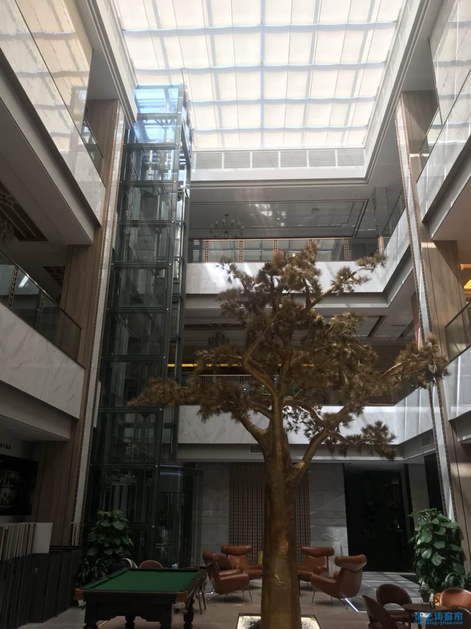 在炎炎夏日,玻璃采光頂采用金藝濤電動天棚簾進行遮陽,完全不會使光照成為室內顧客活動的絆腳石。佛山金藝濤天棚簾根據(jù)客戶的需求,會合理設計不同透光率的天棚簾。