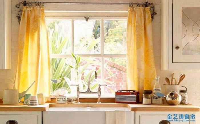 半簾,顧名思義只遮一半的窗簾,有的遮上半窗,有的遮下半窗,這個可以根據(jù)廚房的情況而定,并且還可以起到裝飾的作用。