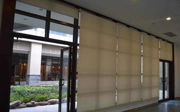 電動卷簾可采用“一拖多”的形式,在機構中增加平衡器或萬向節,使一個電機同時拖動多副面料。當電機運轉時,多塊面料一起作升降運動,以達到更好遮光和遮陽的效果。在降低機構的故障率和減少工程費用的方面的優越性也十分突出。在現代化智能大廈中,電動卷簾的控制系統還可以與大樓的控制中心對接,方便實現遠距離規模化的集中控制。