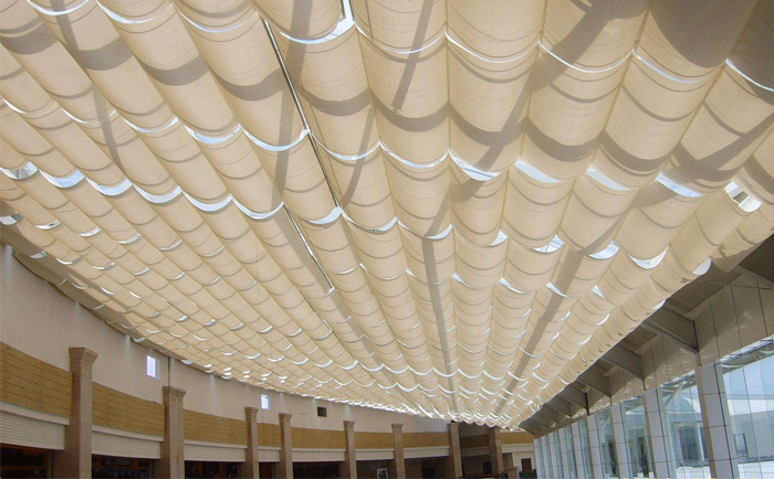 FCS天棚簾應用場所:中大型的遮陽場所,如商務中心、百貨大樓、體育館等公共場所。