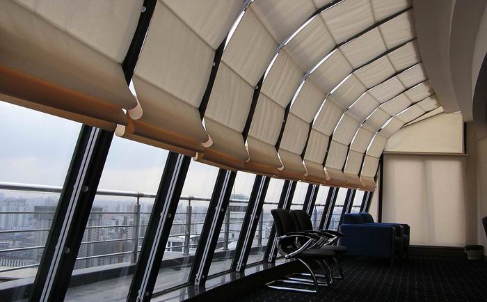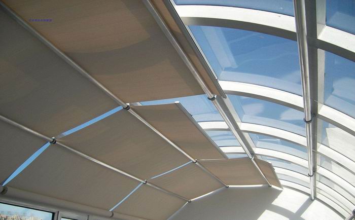 FSS電動天棚簾應用場所:彎曲、傾斜或水平的中小型遮陽場所,如酒店、咖啡廳等玻璃屋頂。