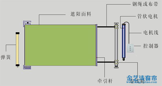 FSS天棚簾系統主要有管狀電機和彈性張力系統組成。一端為驅動軸,內裝管狀電機;另一端為從動軸,內裝彈簧機構,電機正轉帶動面料前行,另一端的彈簧逐漸收緊,將面料張挺,電機反轉彈簧逐漸放松,遮陽面料卷回。其操作簡便,電機工作時噪音小,運行平穩。