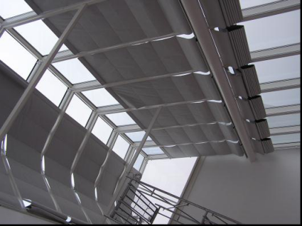 折疊式天棚簾,分鋼絲導(dǎo)向折導(dǎo)軌導(dǎo)向折疊式天棚簾疊式天棚簾,導(dǎo)軌導(dǎo)向折疊式天棚簾。折疊式天棚簾,可用于商廈、商場(chǎng)、賓館、寫字樓、等大型采光頂也可用于高級(jí)住宅陽光室、花棚、玻璃陽臺(tái)等處調(diào)節(jié)遮陽、保持室內(nèi)適宜溫度,避免強(qiáng)光輻射,改善采光效應(yīng)。